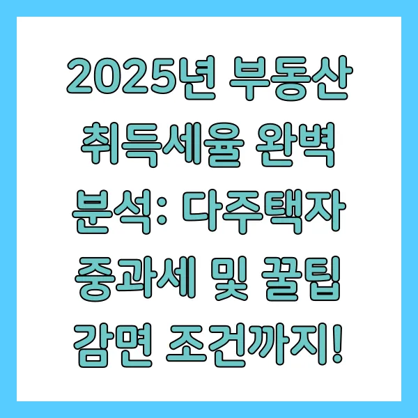 부동산 투자, 누구나 꿈꾸지만 세금 앞에서 좌절하는 경우가 많죠? 특히 취득세는 부동산 거래 시 가장 먼저 마주치는 세금이라 더욱 꼼꼼히 알아봐야 합니다. 2025년, 달라진 부동산 취득세율과 다주택자 중과세 조건, 그리고 놓치면 후회할 감면 혜택까지! 지금부터 속 시원하게 파헤쳐 드리겠습니다. 😉